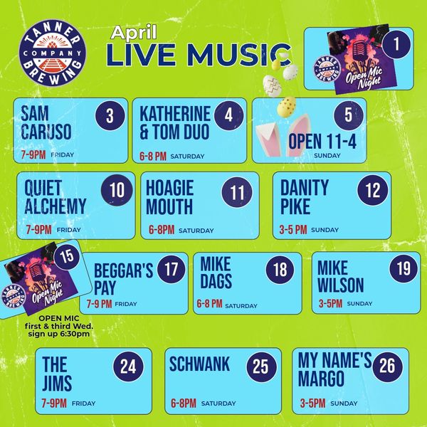 Check our socials for updated info on events, live music and new beer releases! Tanner brewing is dedicated to supporting local music, acoustic originals, and hosting live music weekly!